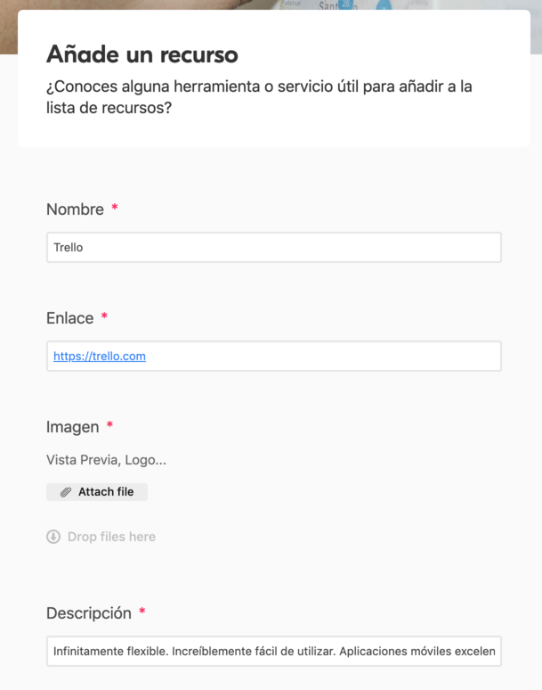 Puedes añadir nuevos recursos a la lista usando este formulario.