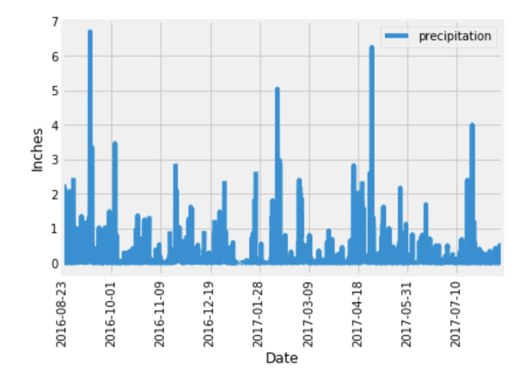 Using this date, retrieved the last 12 months of precipitation data by querying the 12 preceding months of data