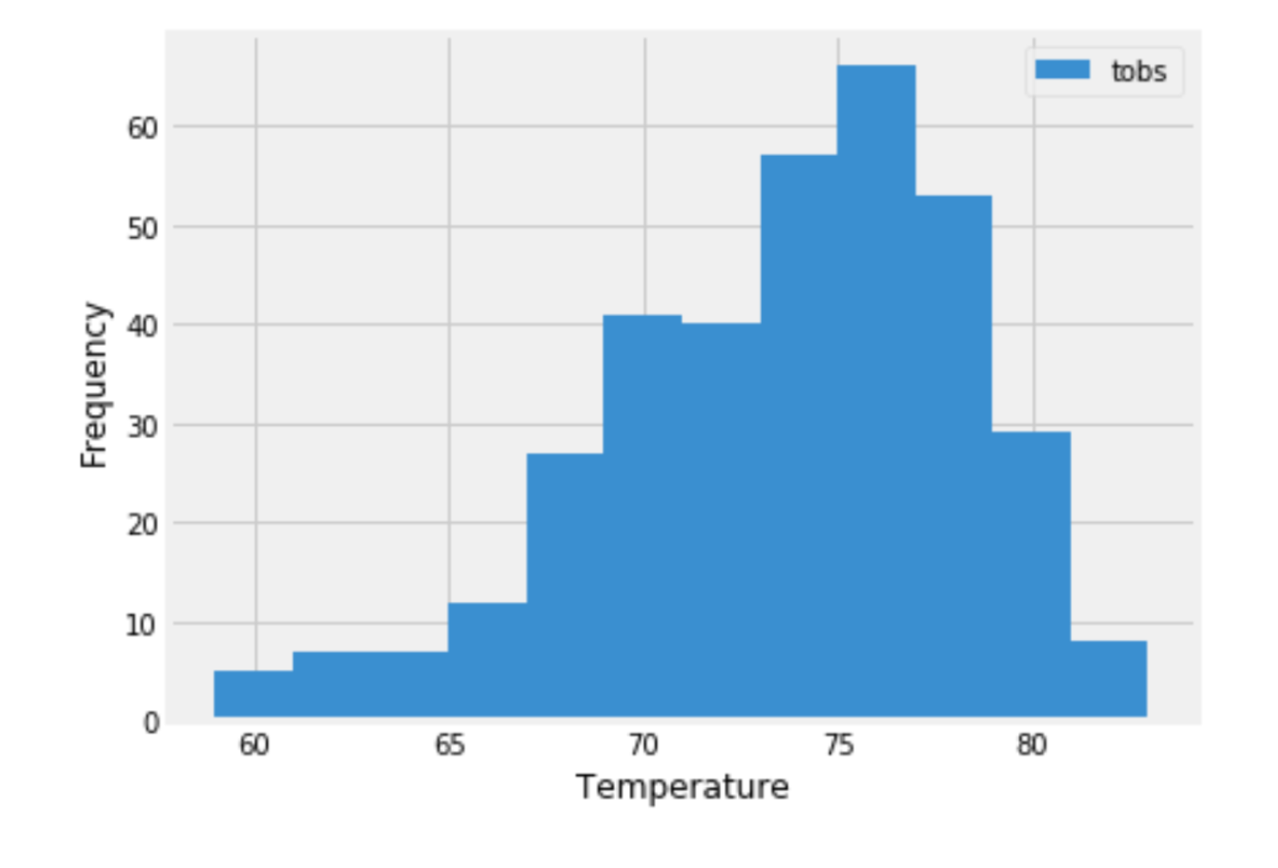 Designed a query to retrieve the last 12 months of temperature observation data (TOBS)