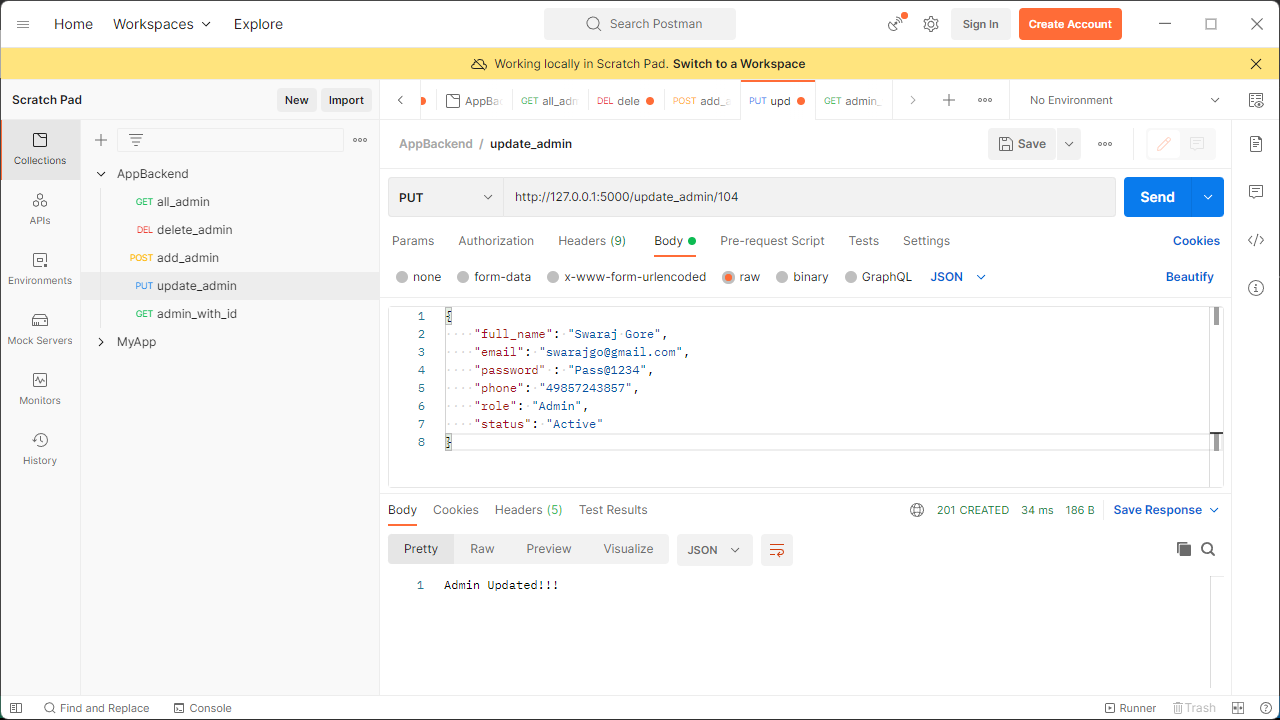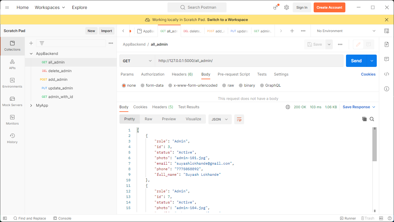 - We simply need to call http://127.0.0.1:5000/all_admin/ this endpoint with