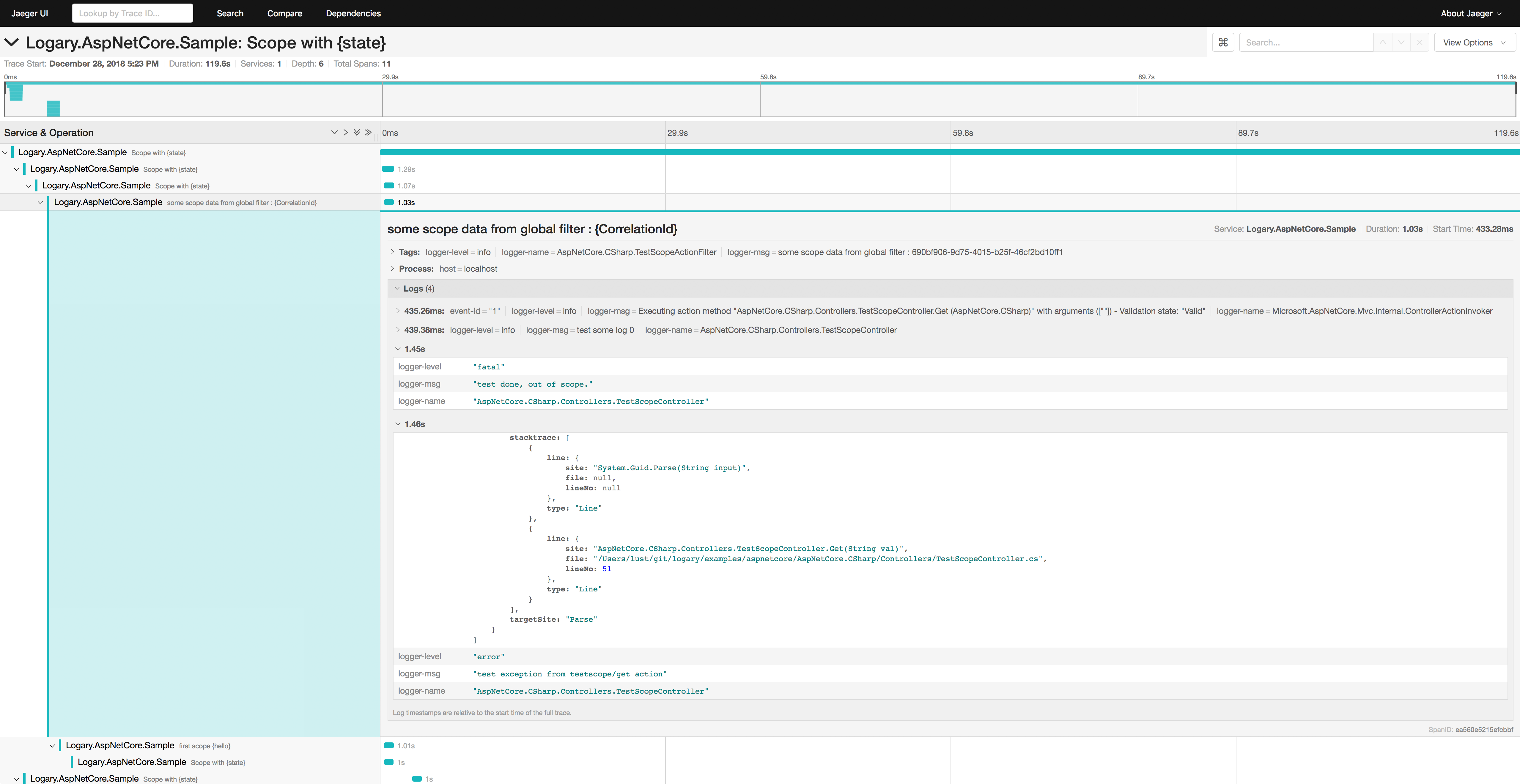 span are created from logger, and inherit before the span finish, every log message produced are belong to this span (if they are flow the execution context and using when target receive a log message (message without