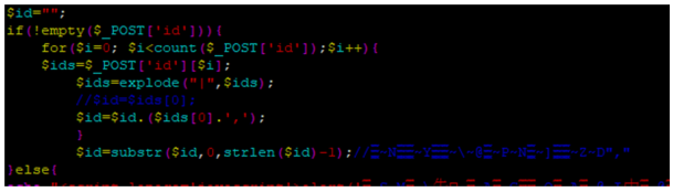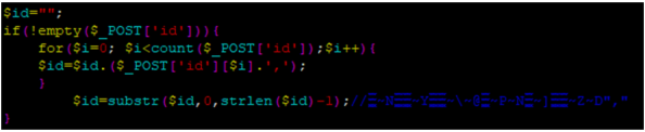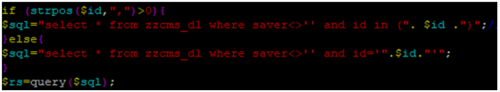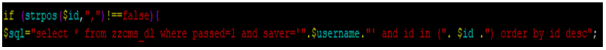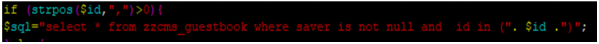 We can find there is no security filter for id parameter and it means we can inject Sql query via id parameter if we concat ',' value at the end of id parameter