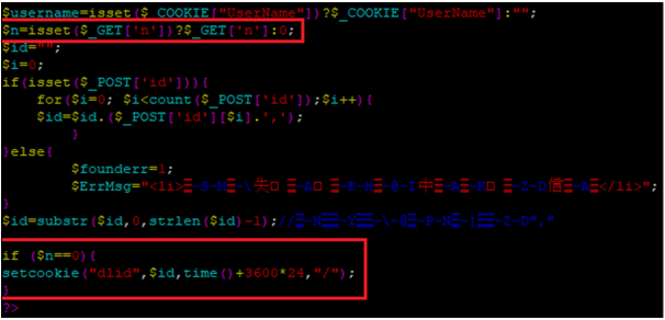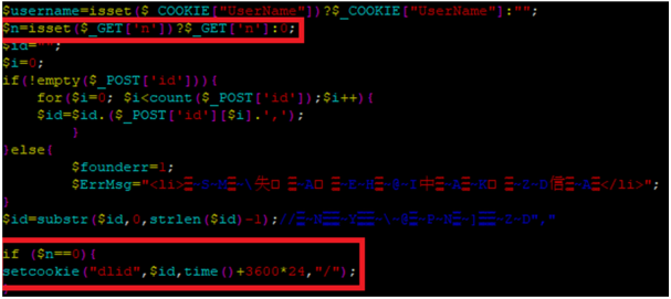n var will get value via GET[‘n’] and if n var value is not 0 php does not make dlid COOKIE