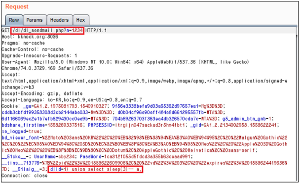 give below "POC" value for cookie data in “/dl/dl_sendmail.php?n=1234"