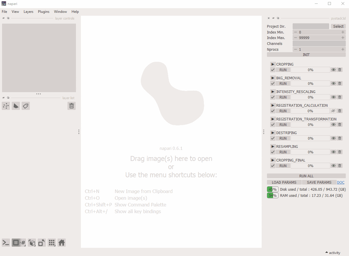 configuration files (see documentation), or through a dedicated GUI designed with Napari.