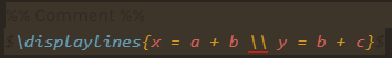 The first line in the image is %% Comment %%, the second line is surrounded by $ ... $, but it's really difficult to see.