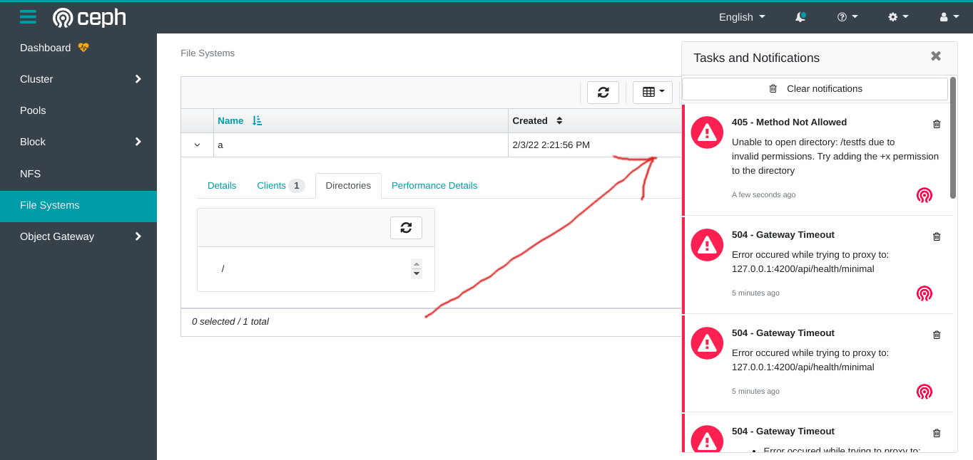 mgr/dashboard: Directories Menu Can't Use on Ceph File System Dashboard #44849