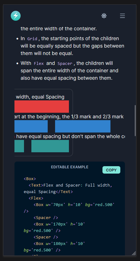 One or more live preview examples in the docs overflow their