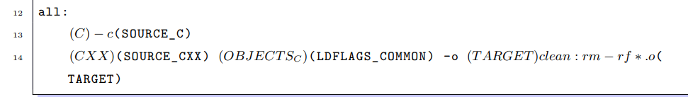 The Makefile on page 12 in the pdf is not formatted correctly compared to the actual source Makefile in the repository.