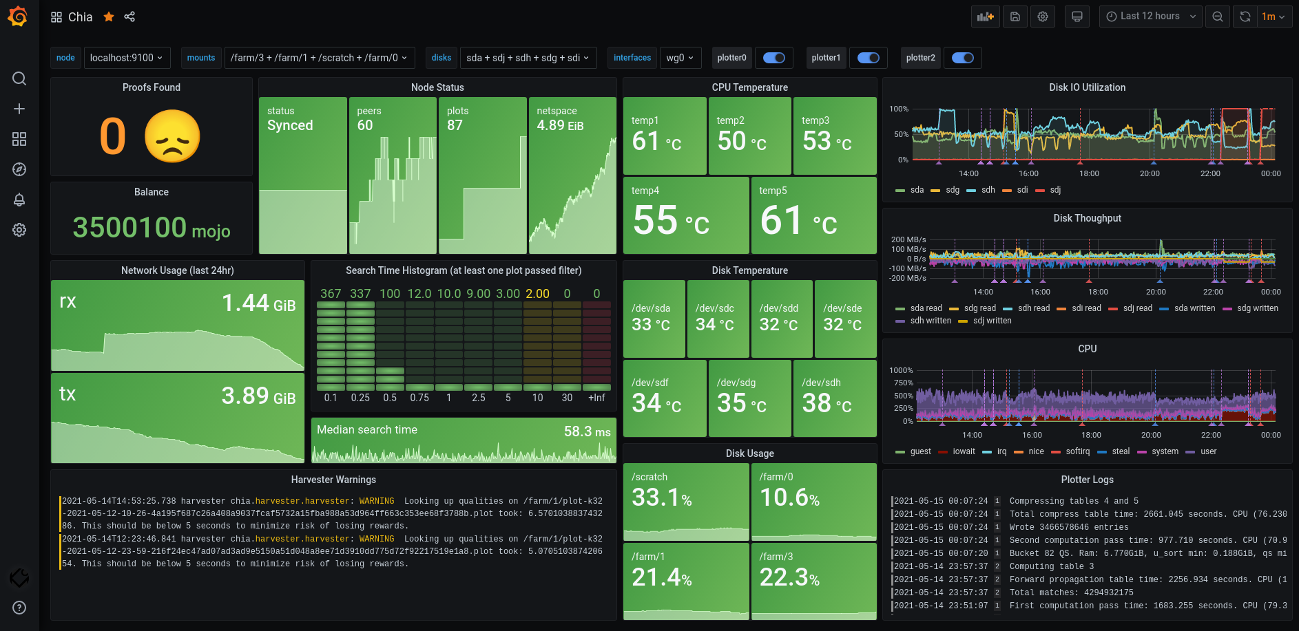 - promtail and loki to collect and store logs from the Chia node and plotters (and system too if desired)