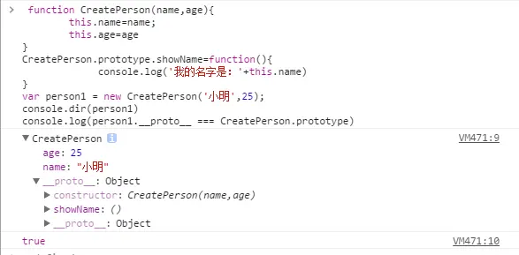 并且它们中有一条链关联着: person1.__proto__ === CreatePerson.prototype