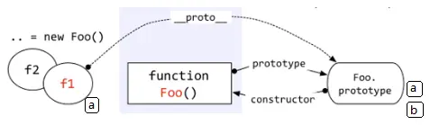 当我们查找f1.b时,f1中没有这个属性,我们便顺着f1.__proto__这条链去