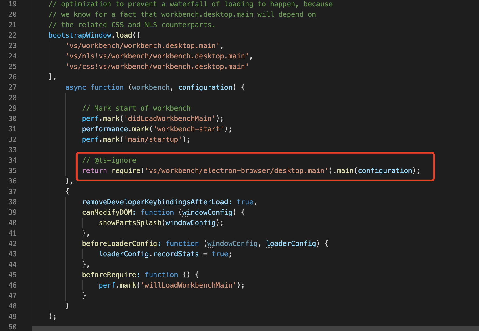 - workbench.js 里面,会加载 vs/workbench/electron-browser/desktop.main 代码并执行 main 函数