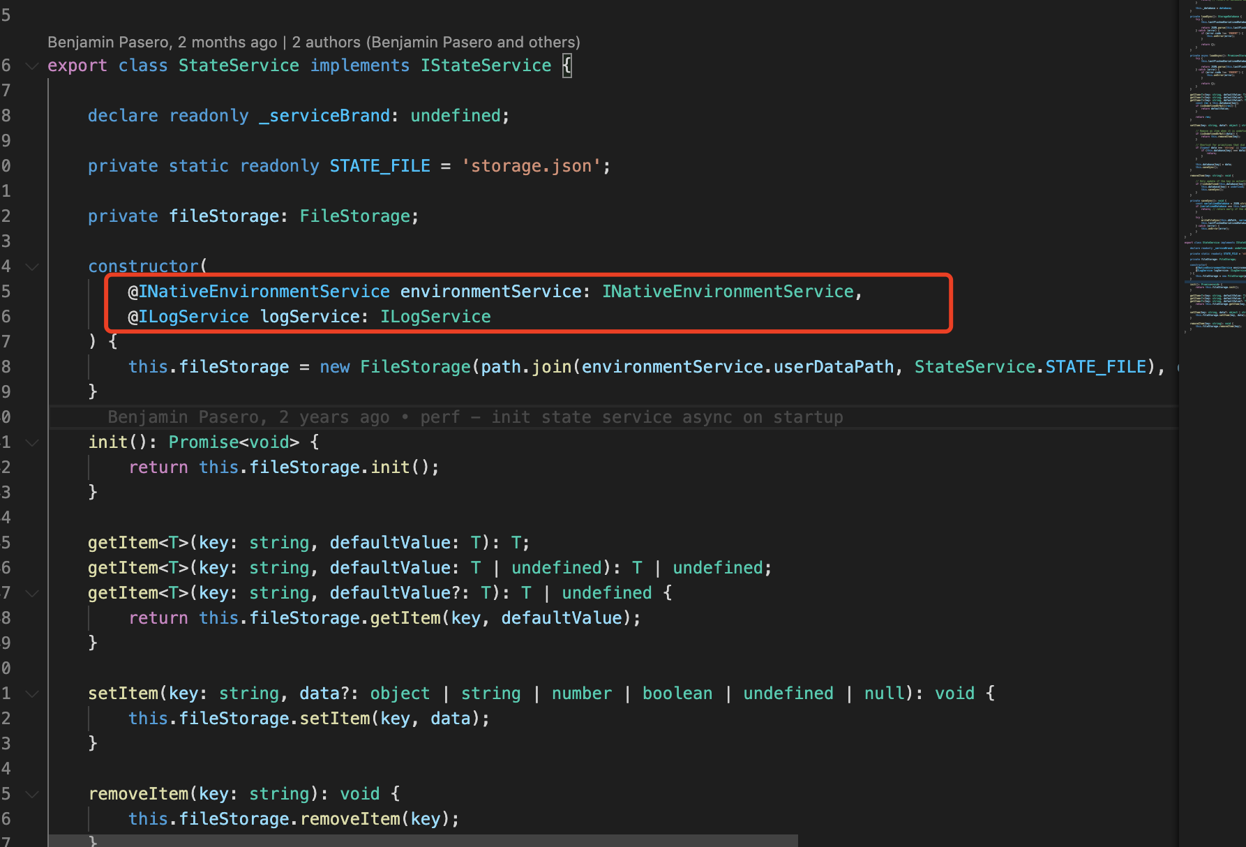 装饰器的功能,只是将当前依赖的服务(比如 ILogService 对应的 logService) 加入到 StateService 的依赖项里面。