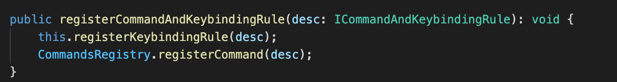 每个服务都可以通过一个装饰器来声明自己想要用这个服务,之后在实例化的时候,则可以通过 services 这个 map 依赖注入进去。比如下图,通过装饰器来声明自己所依赖的服务。