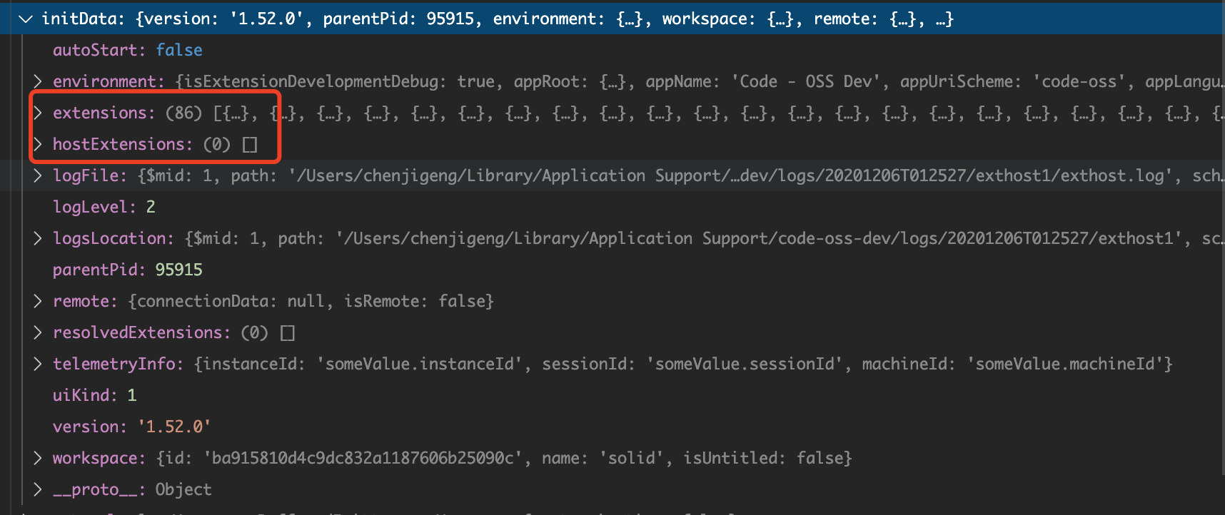 在创建扩展进程的时候,会执行 startExtensionHostProcess 函数,而在这个函数中,首先会先跟(render)渲染器,也就是 vscode 客户端进行连接, 通过连接,可以拿到客户端的详细内容,其中就包括了一些初始化参数(包括客户端安装的扩展等)。