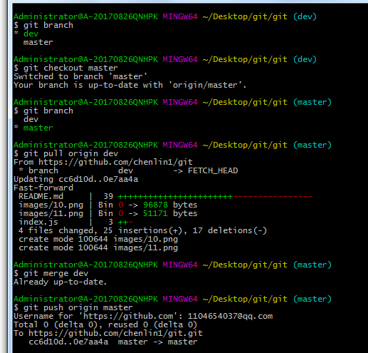 (5). git merge dev (合并分支)
