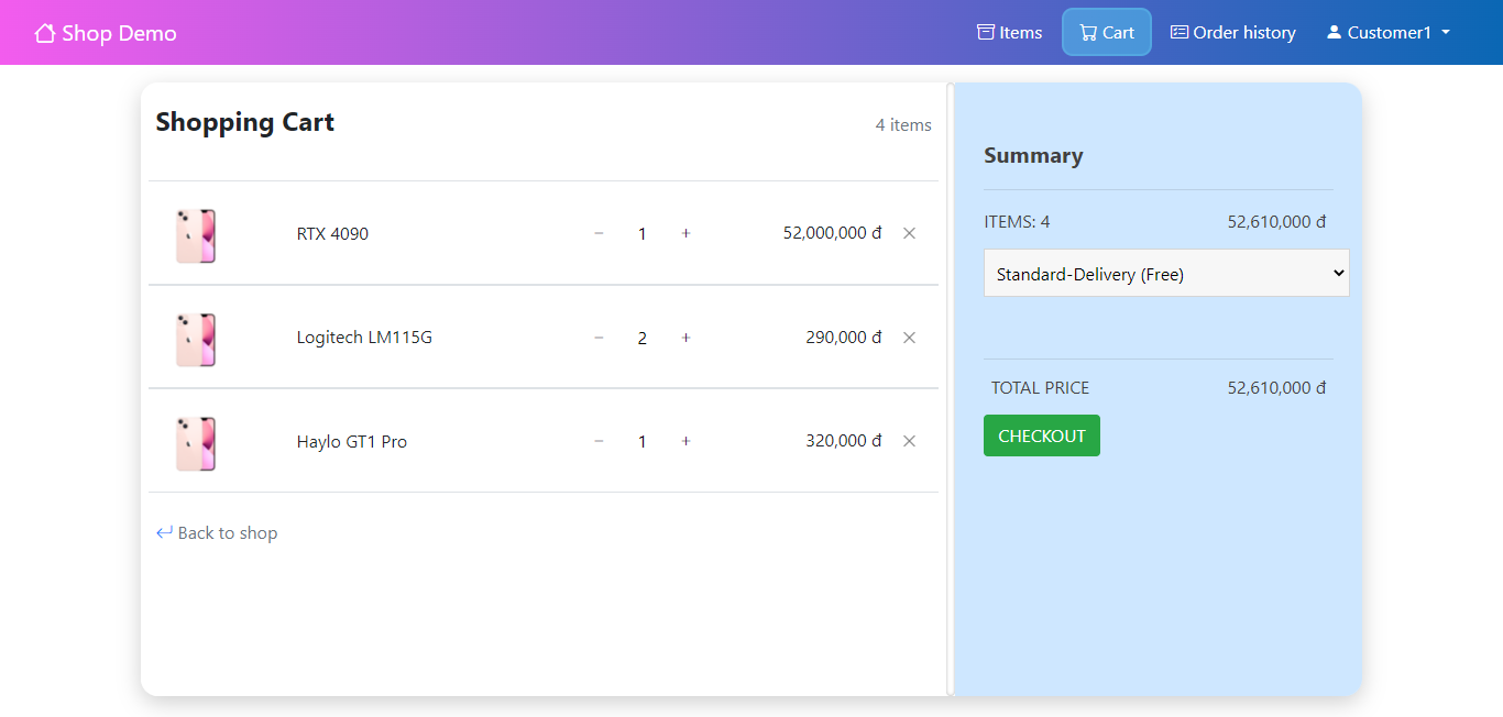 - In this page, you can edit your cart item by click on [+] [-] [x] button or edit the number, quantity & value will be calculated automatically.