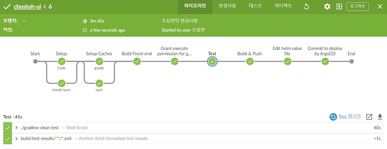 After: 3m 45s 소요. gradle 빌드 첫단계 40s로 통과
