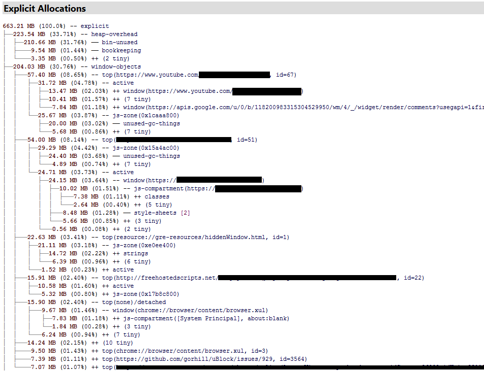 I see uBlock taking a grand total of 33 MB, out of 663 MB in explicit allocations. Nowhere near your original statement of 1.7 GB. So you did not reproduce the bug.