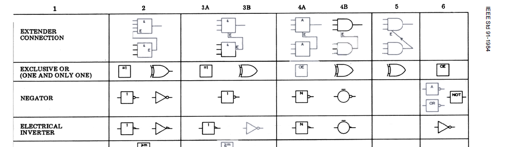 The IEEE standards don't have requirements of how these basic symbols should look, only recommendations. The requirements of these standards have more to do with annotations on digital logic, like certain designators: The rectangular-shape symbols you will see in datasheets also, especially when there are more complex behaviors; here's from the TI 74LS138: So I would remove the word