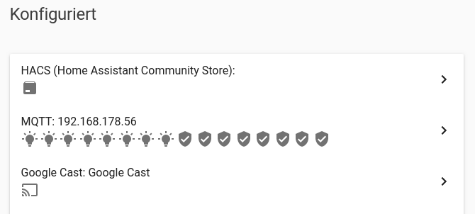 Hinweis: ich habe sämtliche manuelle MQTT-Einträge in der .homeassistant/configuration.yaml entfernt