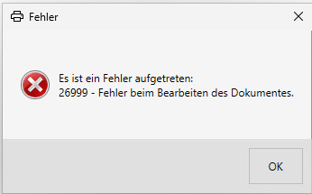 "Es ist ein Fehler aufgetreten: 26999 - Fehler beim Bearbeiten des Dokumentes."