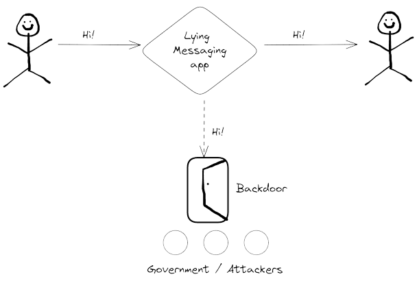 Cloak's primary security goal is disallowing the messaging app's backdoor from reading, or identifying patterns in your messages. Since we have to operate on top of the messaging app, this is like fighting someone in their own backyard. Below, we have listed the challenges and the solutions we have implemented to overcome them.