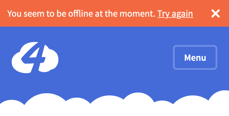 This task involves designing a modifier class that will style the alert well for notifying the user they are offline. It should be prominent but not alarming (since the user didn't do anything wrong), and it should look nice against the blue of our Cloud Cover pattern. And unlike the current offline bar, it should pass our accessibility guidelines.