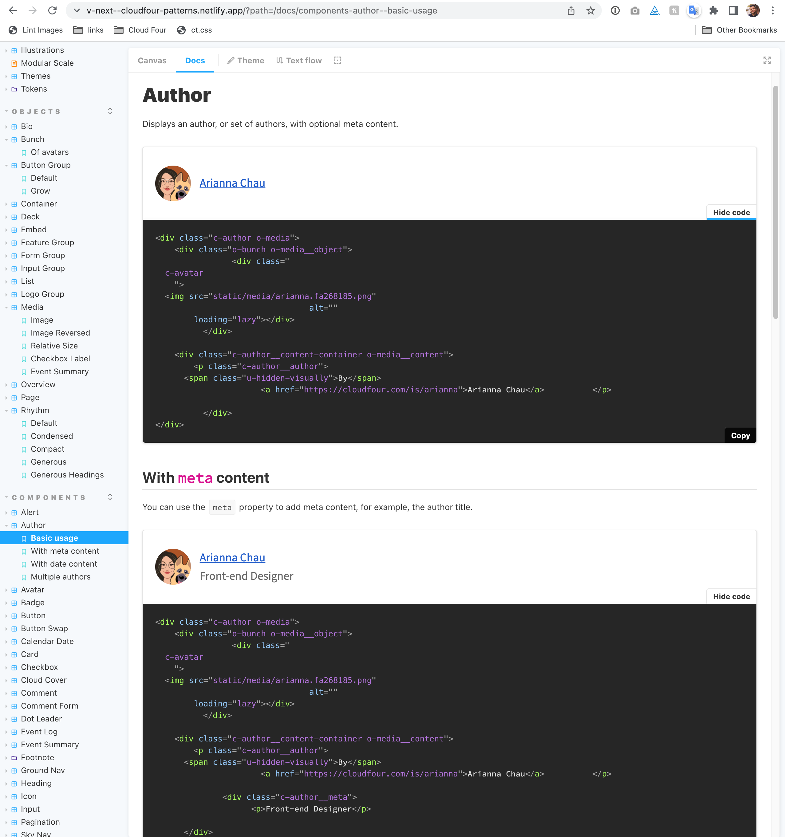 There seems to have been a regression. Before code example docs showed `embed`/`include` examples (image pulled from #1607):  Instead, they now show HTML markup: <img width="1277" alt="Screen Shot 2022-03-29 at 3 21 00 PM" src="https://user-images.githubusercontent.com/459757/160716658-59e8bde6-a1af-467d-acc6-2323e55eb739.png">