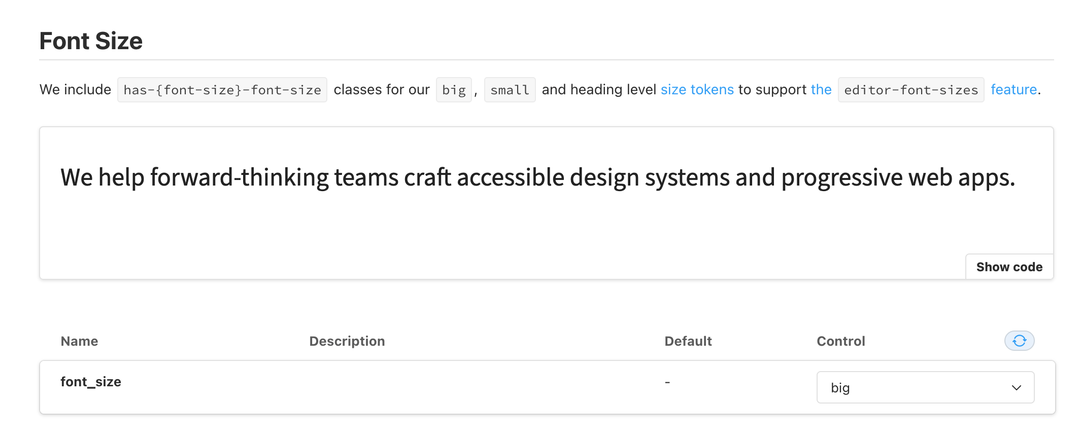 has-{font-size}-font-sizeutilities for the Gutenberg block editor.size.fontandnumber.line-heighttokens.-n-{digit}token names to be-n{digit}for consistency with class names.Screenshots