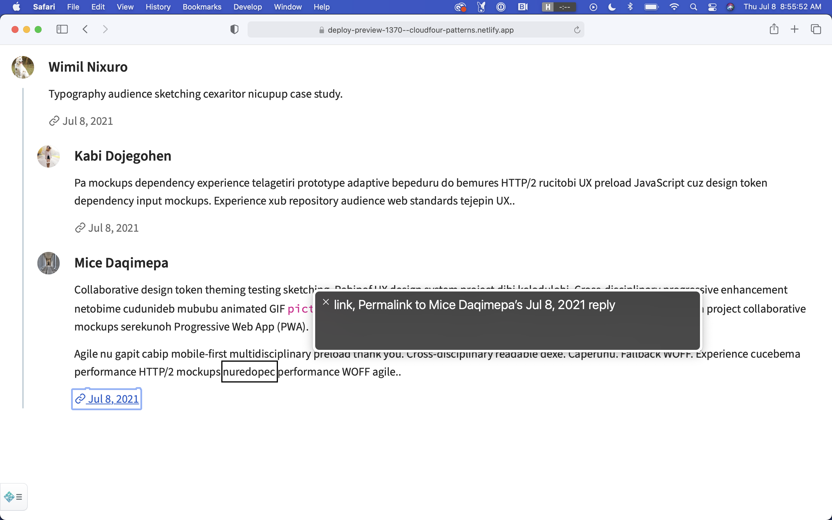 I left a few nits and questions inline. I think we may want to switch from using a title to visually hidden text for comment links? Everything else is non-blocking though.