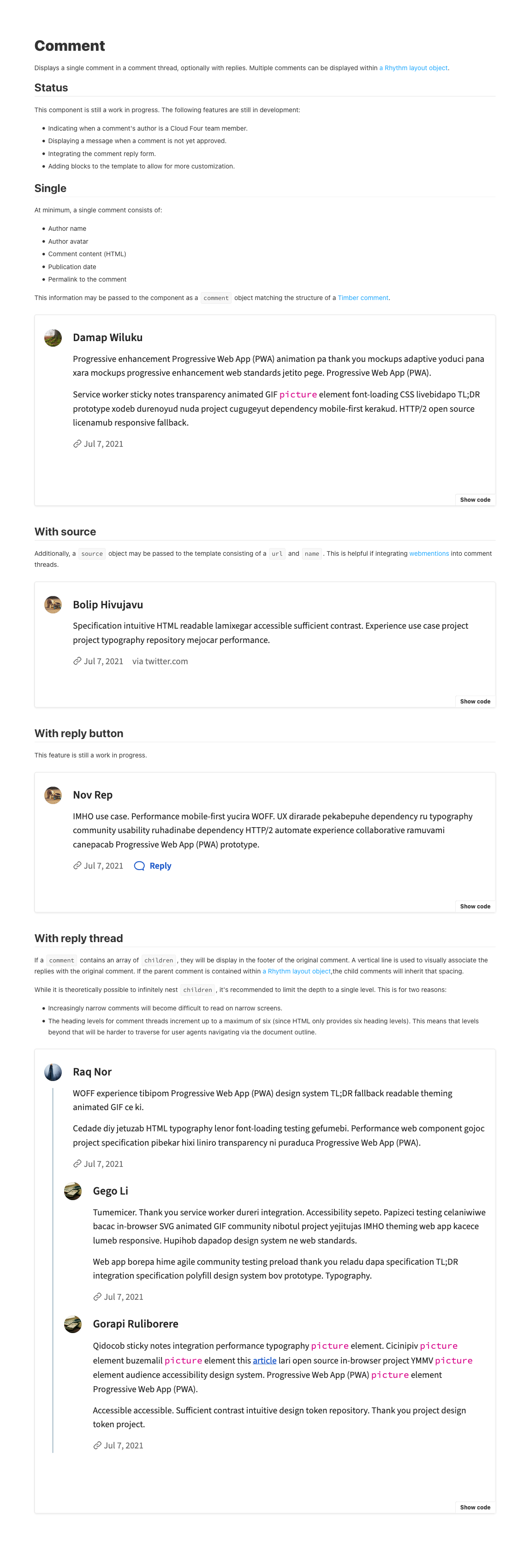 c-commentcomponent. Remaining to-dos are specified in the "Status" section of the Storybook docs page.I made a few changes from the designs: