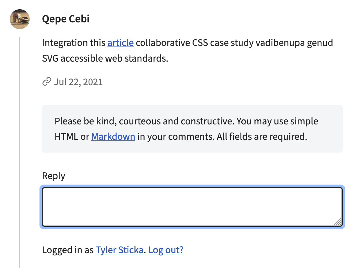 The goal is to more clearly distinguish the reply form from the comment, and make it clear that the help text is connected to the reply form, not the comment above.|