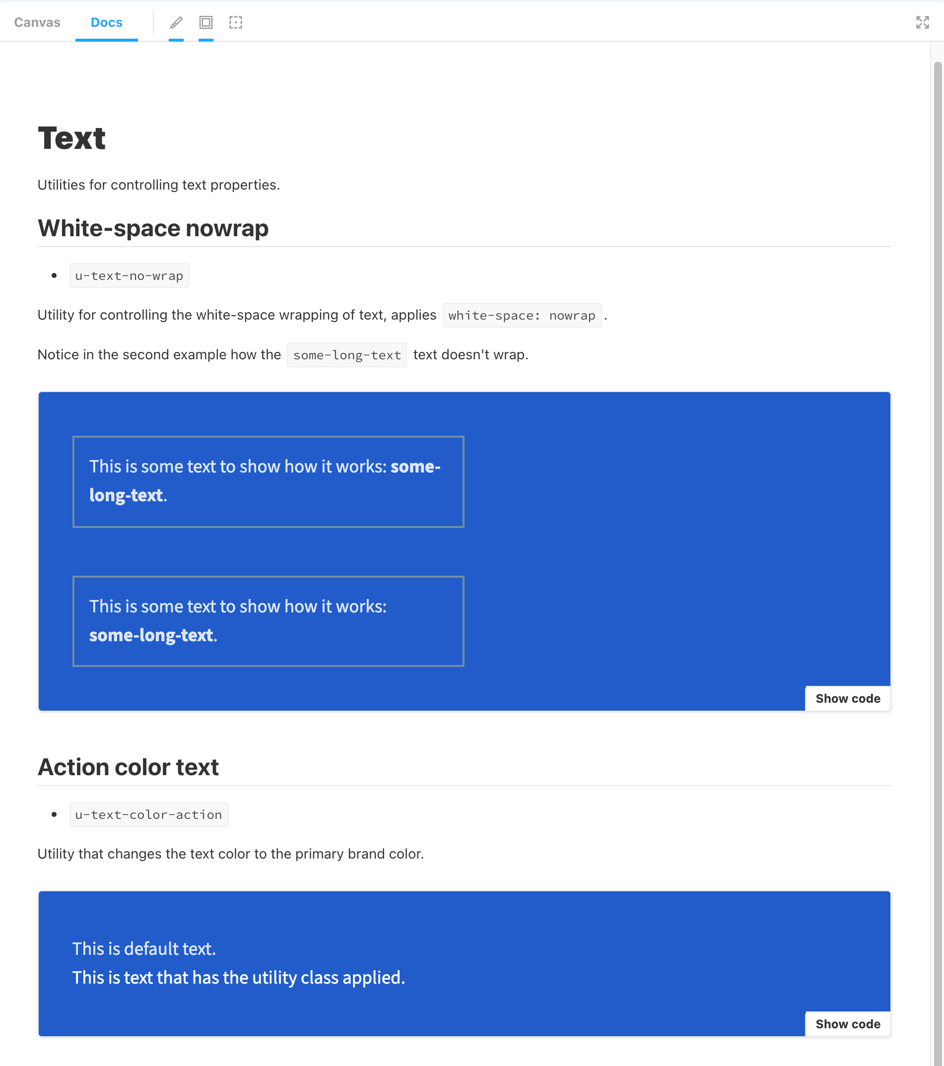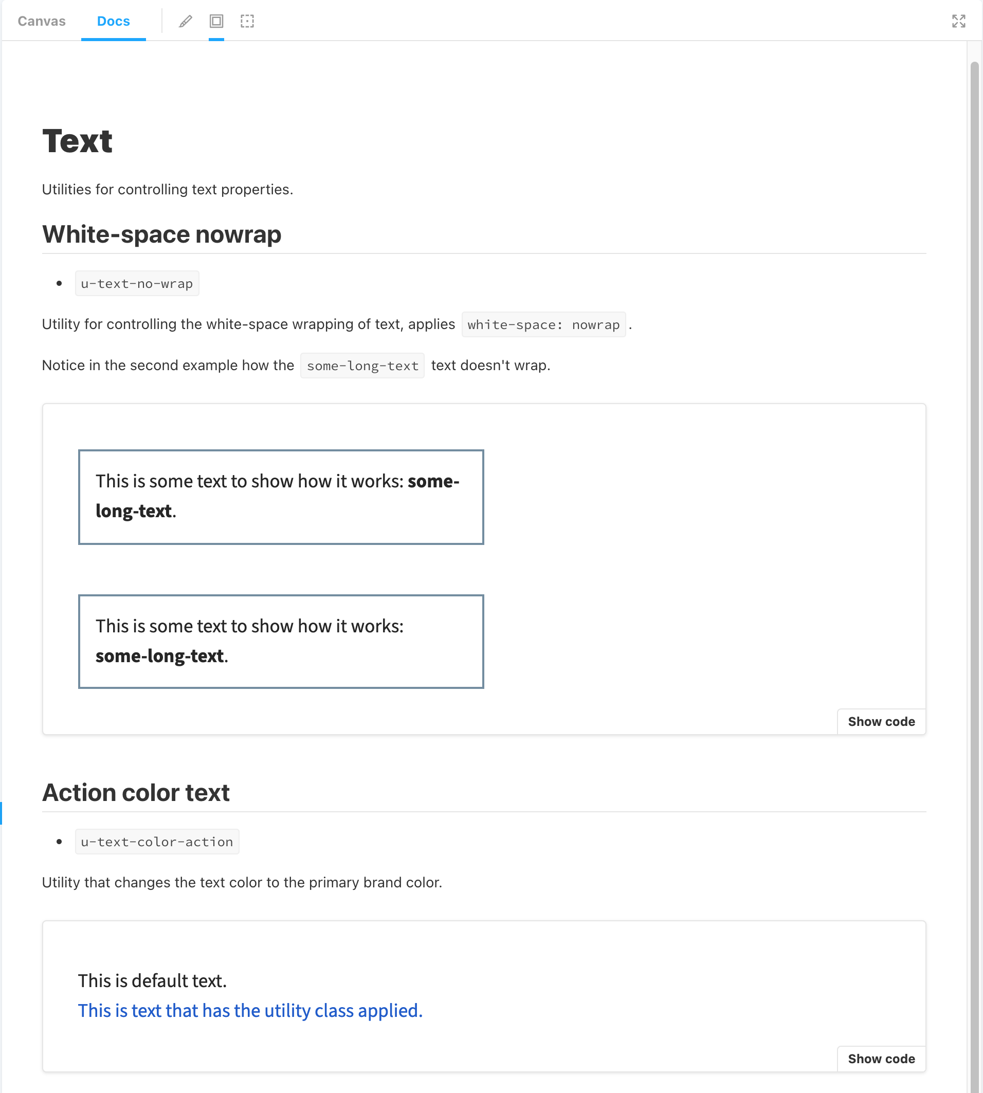 u-text-no-wrapu-text-actionThere was a question in the original issue whether these should be a new pattern or CSS utility classes. I opted for CSS utility classes because it felt like a bit too heavy-handed to go the component pattern route.