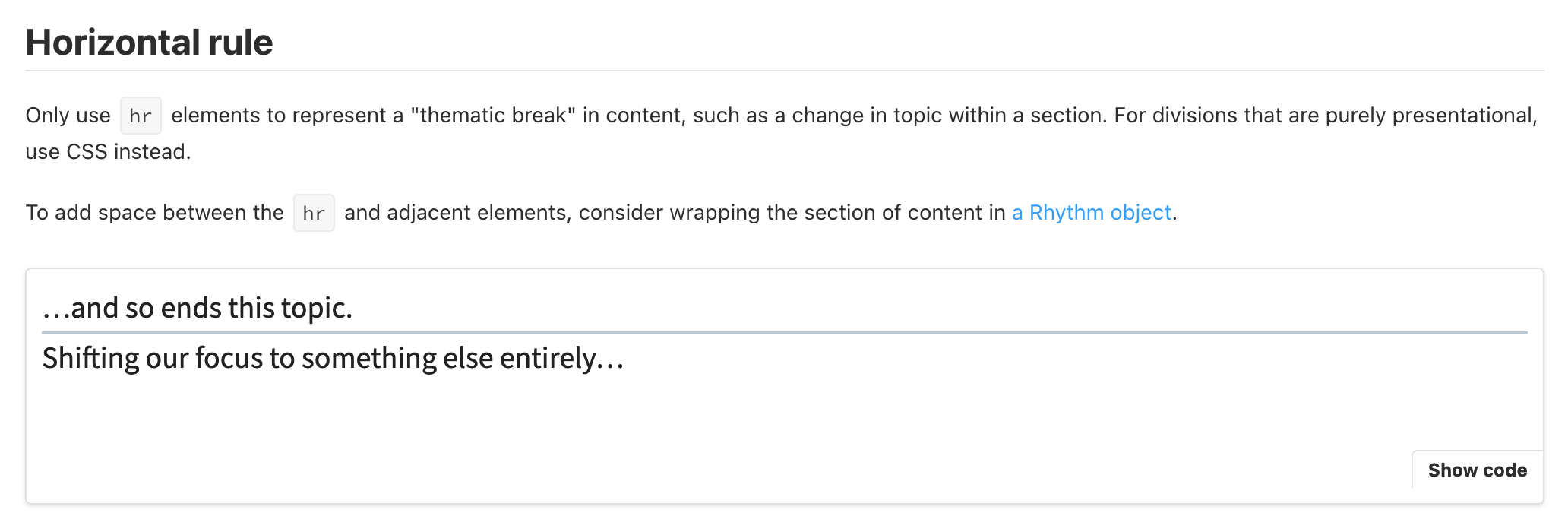 for basic appearance, but takes more color cues from the left comment border so that it will have slightly better contrast (and better compatibility with secondary themes). (I resisted the urge to style the footnote group to match because that feels like a visual distinction that does not necessarily warrant greater contrast.)It also extends those styles to the WordPress "Separator" block.