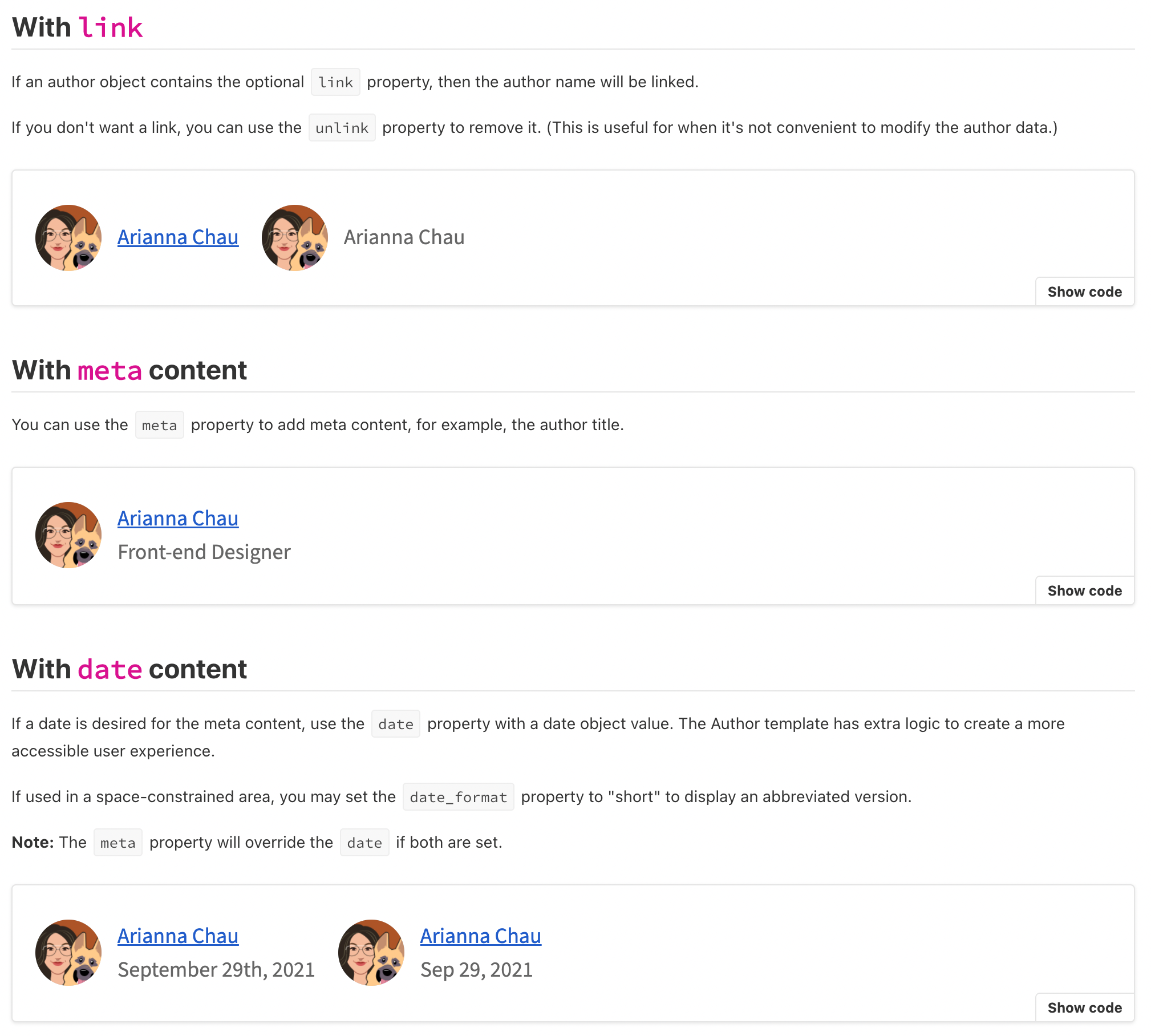 This PR adds two new features to the Author component. First, it adds