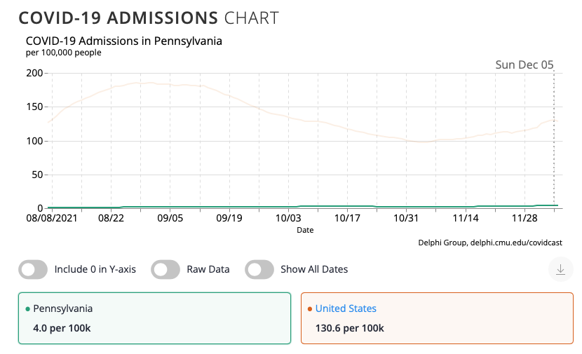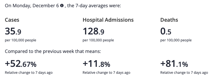 On Dec 6, the number of new hospital admissions is ~4 times the number of new cases! This is crazy, of course. And if I look at the state-level numbers, they're way smaller in comparison: