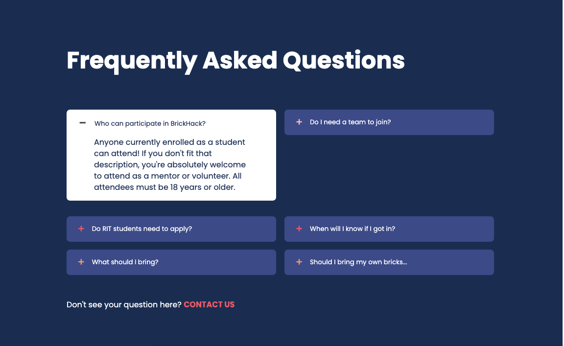 * layout and content with some initial styling * added js for accordion * finishing touches on icons * removed noopener * contact url, question and answer styles * Refactored :) Signed-off-by: Peter Kos <pkos91@icloud.com> * Animations working!! Signed-off-by: Peter Kos <pkos91@icloud.com> * cleaning up unnecessary styles * Added question content, fixed link color in card Signed-off-by: Peter Kos <pkos91@icloud.com> * Tweak panel p styling Make margin styling a bit better but messier Signed-off-by: Peter Kos <pkos91@icloud.com> * Remove unnesesecary outline none Signed-off-by: Peter Kos <pkos91@icloud.com> Co-authored-by: cxs7700 <cxs7700@g.rit.edu> Co-authored-by: Peter Kos <pkos91@icloud.com>