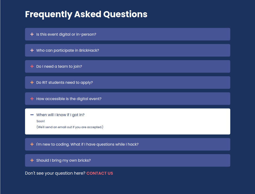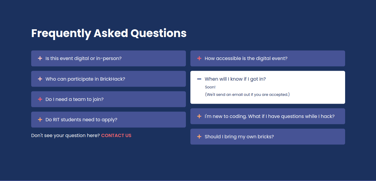 Stored the 'contact us' tag in the faq-card-right div block, to prevent the FAQ cards from pushing it down. To maintain responsive design, I've pasted a duplicate 'contact us' tag onto it's original position while alternating the display between the faq-card-right tag position and it's original position.