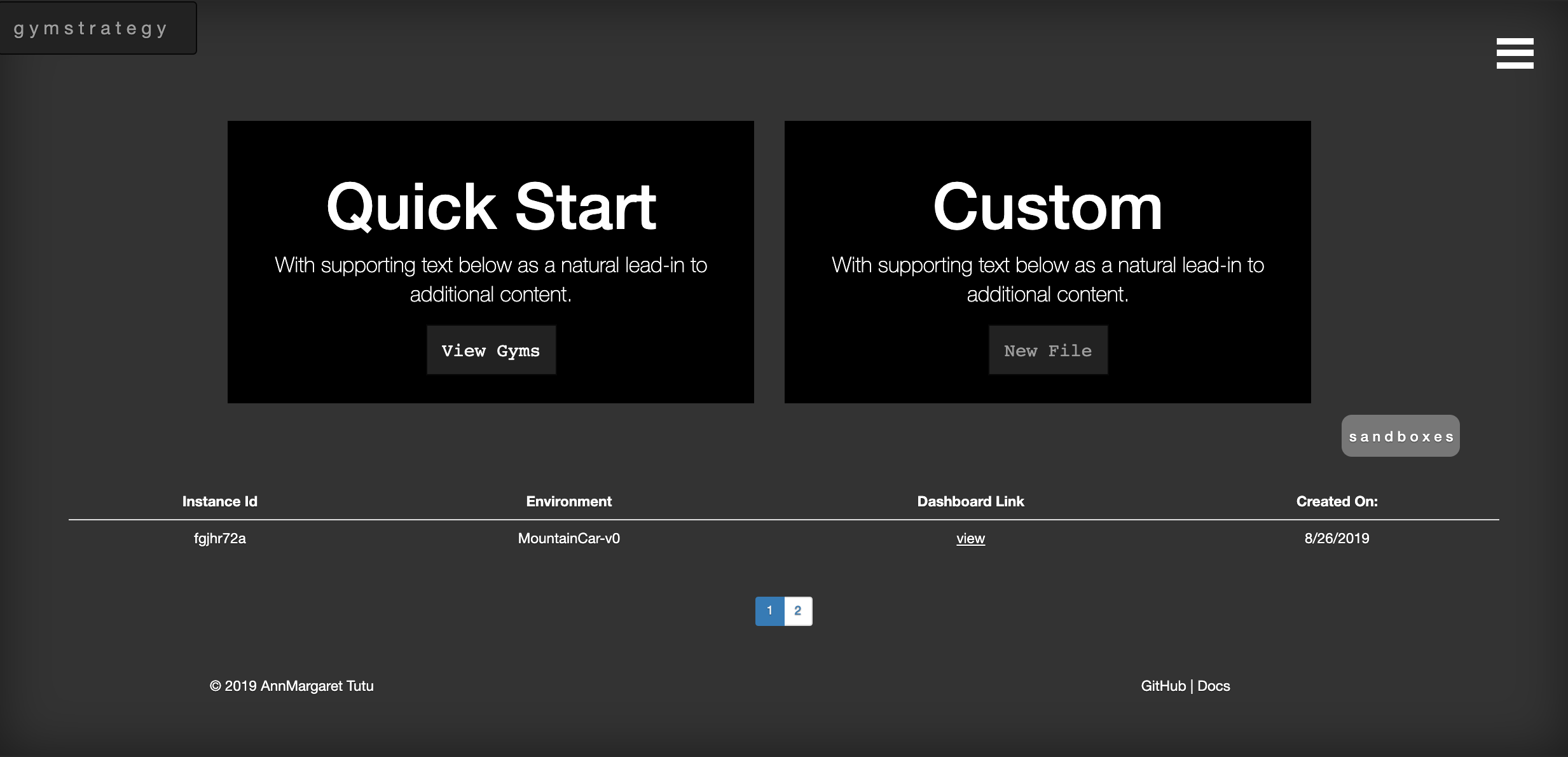 Reinforcement Learning Sandboxes in the Cloud. For backend code (written in Swift), visit the backend_server branch at this link.