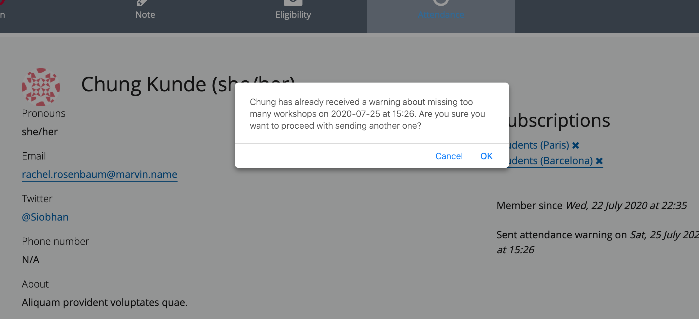 Display more details in attendance warning confirmation dialog #1319 #1365