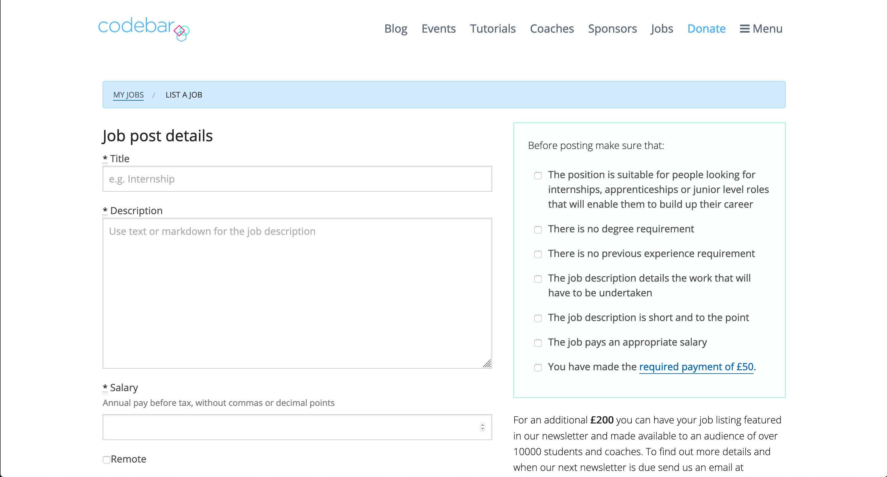 Update job post criteria checklist on member new job page to cover all requirements #1411