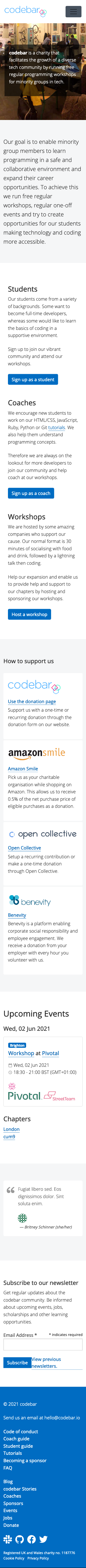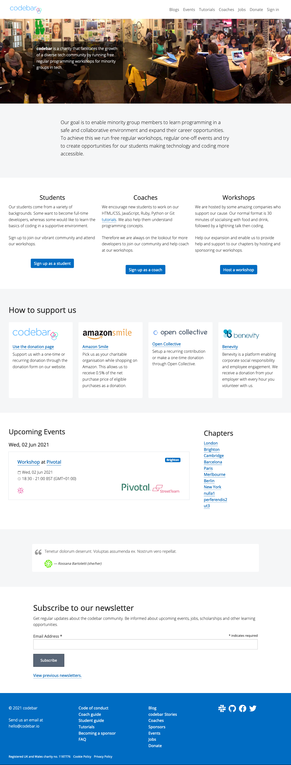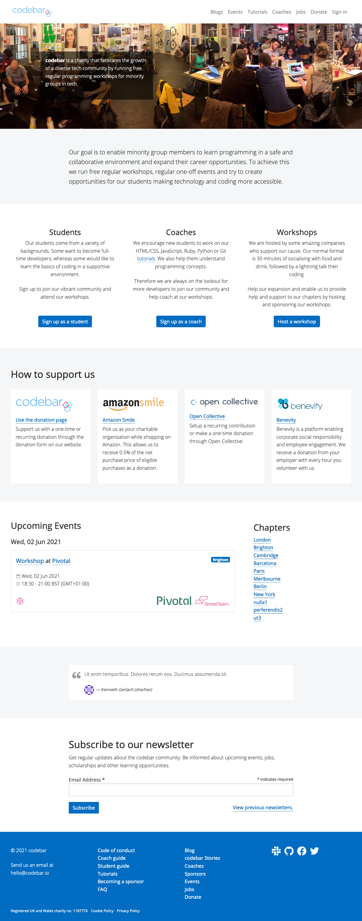 This PR fixes a few layout issues I noticed while QA-ing the new Bootstrap homepage. It also converts the new newsletter signup form section to use Bootstrap classes. It also improves the look of the explainer section, as well as fixes a few layout inconsistencies between sections. It also fixes the event card layout in mobile.