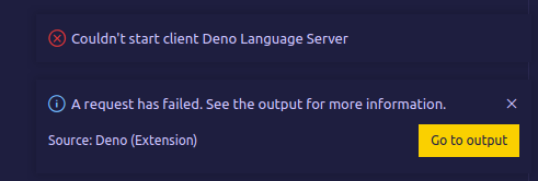 [Error - 4:44:57 AM] Starting client failed Launching server using command deno failed.