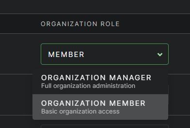 We don't have the concept of an "org admin" in the product, only org "manager" and org "member":