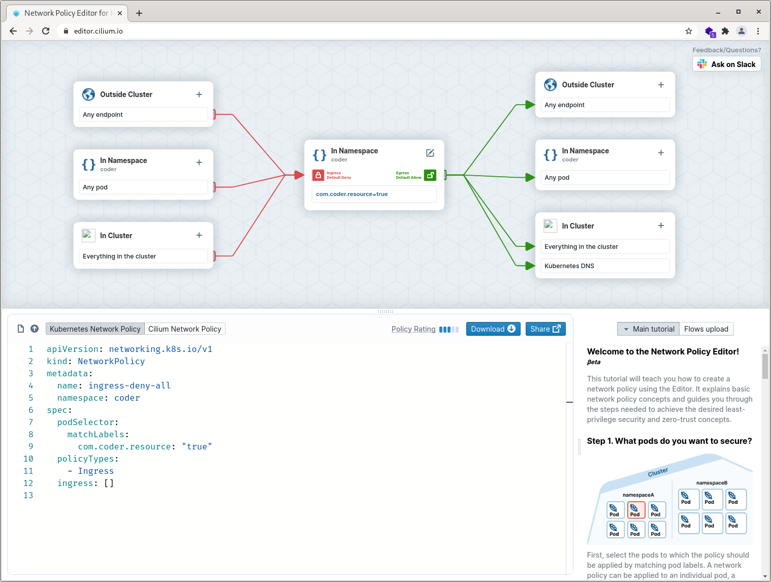 This is what Cilium's Network Policy Editor shows for this rule: