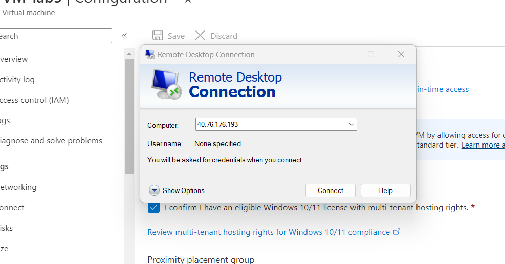 3. Open Remote Desktop. Here, you can type in the username and password when you initially made the virtual machine.