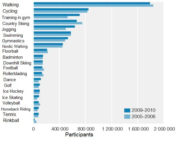 Figure 3. Free-time sport activities among people 19-65 (Website of the statistics of Finland 2018)