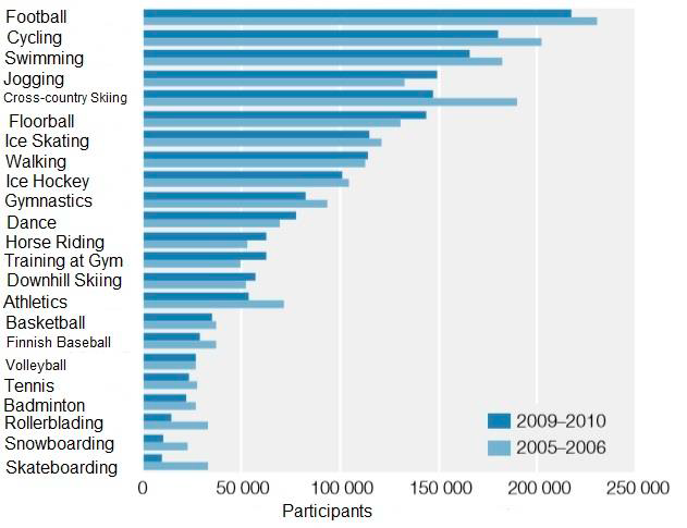 Figure 4. Free-time sport activities among people 3-18 (Website of the statistics of Finland 2018)